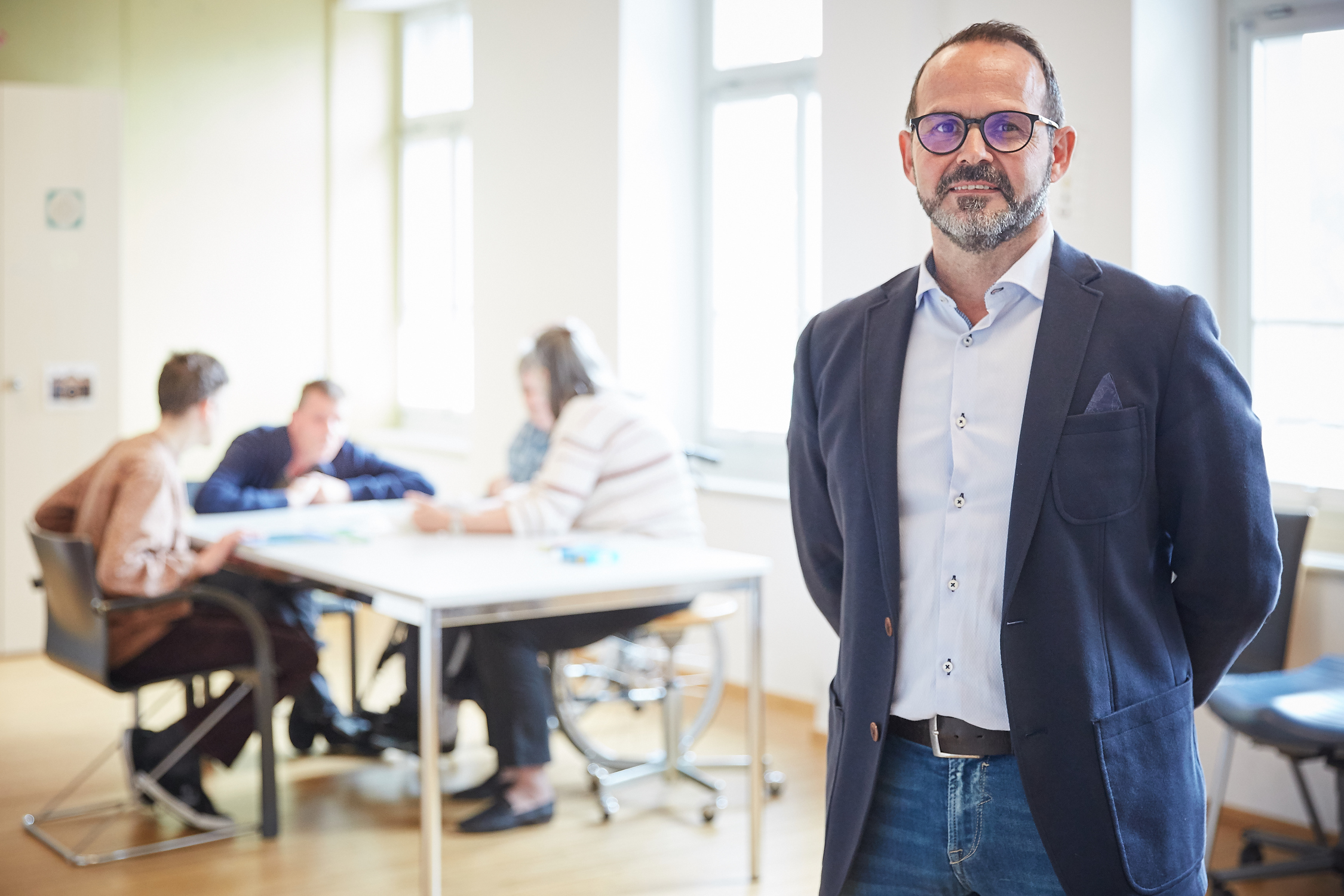 Matthias Sander, Vereinsvorstand und Hundehalter von vier Galgos, im Besprechungszimmer von New Graceland: «Wir sind inzwischen zu einem schweizweit bekannten Kompetenzzentrum für Windhunde geworden.»