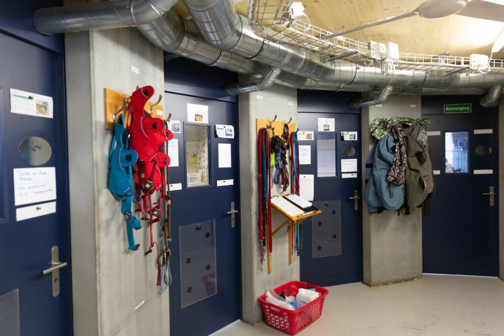 Das Fachpersonal beschäftigt die Hunde täglich und übt draussen zum Beispiel das Einsteigen in den Kofferraum.