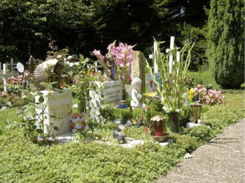 Klarer ist die Situation bei Kindergräbern. Dabei handelt es sich nach der gängigsten Definition um Grabstätten für Kinder, die vor der Vollendung ihres fünften Lebensjahres verstorben sind. Solange die Kinder die gesetzlichen Voraussetzungen für die Beurkundung der Geburt erfüllen, haben sie ein Anrecht auf eine Bestattung. Die Eltern haben das Recht, den Namen des Kindes ins Zivilstandsregister eintragen zu lassen. Dieser Name wird dann auch auf den Grabstein graviert.